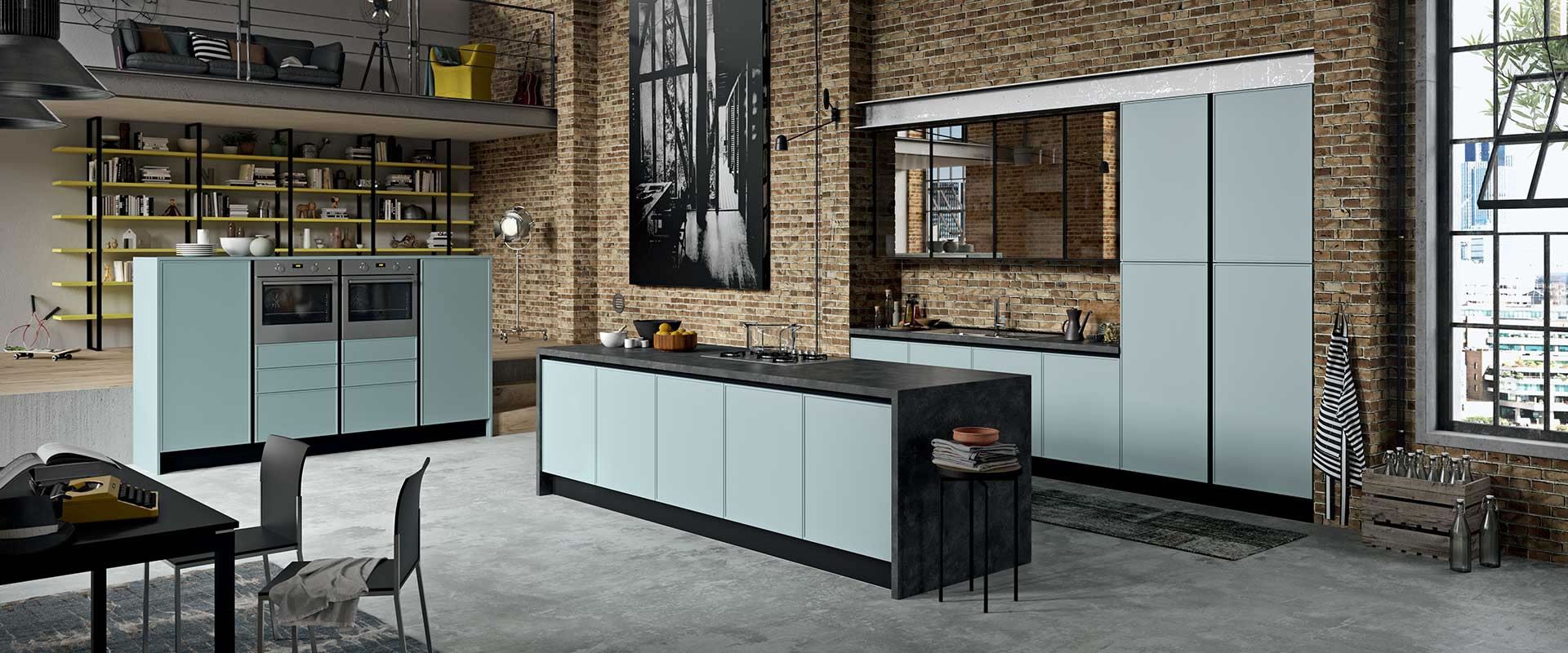 Nelle cucine moderne a Agrigento del marchio Aran un animo classico sposa i trend più contemporanei al fine di trovare nuove declinazioni dal sapore metropolitano, urban e garage.