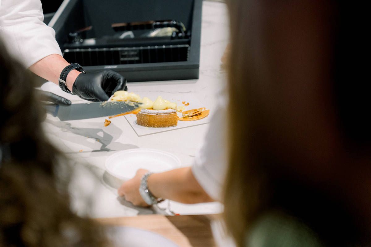 Lo Chef Damiano Carrara ha presentato la sua ricetta della torta delle nonna, tra le domande curiose dei fan e la degustazione finale della sua crema pasticciera, oltre 200 persone hanno partecipato alla sua dimostrazione con grande entusiasmo.
